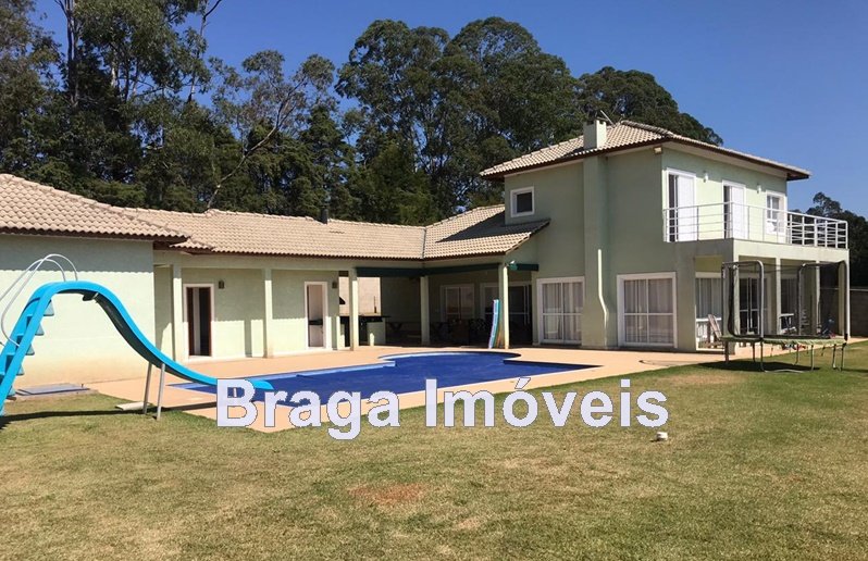 COND.FECHADO - REPRESA ITUPARARANGA/Ibiúna - Excelente chac., casa, em alvenaria, assobradada, c/5 suites (sendo duas no piso superior e uma c/ hidro , portas-balcão e linda sacada c/ vista espetacular), e outras 3 suites no piso térreo c/ frente e saída p/ a piscina, sala com dois ambientes e lareira, lavabo e cozinha americana e lavanderia; área gourmet coberta c/ churrasqueira completa (fogão cook top), bancadas em mármore Ubatuba. Na área externa piscina aquecida de 8 x 3 m de vinil e com hidro de 4m de diámetro com escorregador e um bom deck e WC; possui ainda garagem coberta, oficina e casa de ferramentas. A casa é toda avarandada, acabamentos de metal (metalon) e madeira de primeira qualidade, todo o revestimento em textura, está toda gramada. Toda a área é plana, com entrada social no nível da rua. O condomínio tem todas as ruas asfaltadas, possui marina p/ lanchas e jet sky, água fornecida pela SABESP. A propriedade tem 5 anos de construção. LUGAR IDEAL PARA AMANTES DOS ESPORTES NÁUTICOS - REPRESA C/ 90KM.. Distante 85Km da Pça.da Sé/SP.