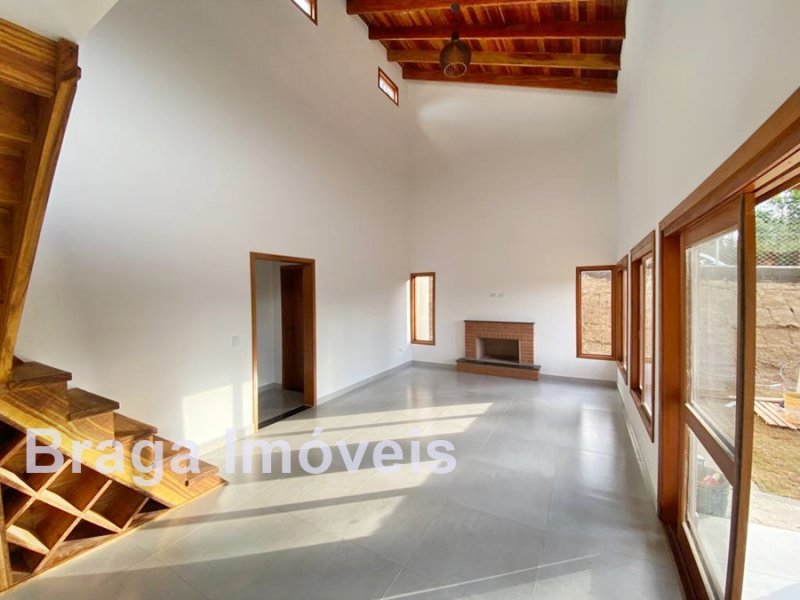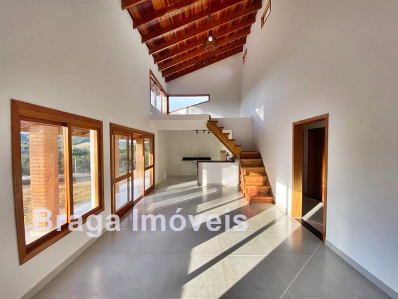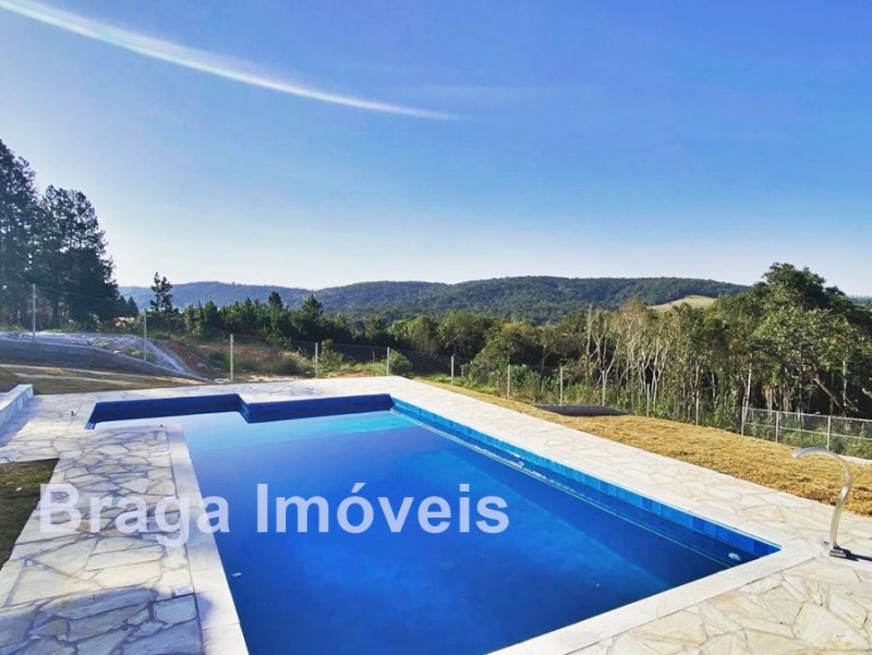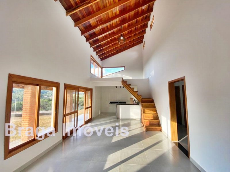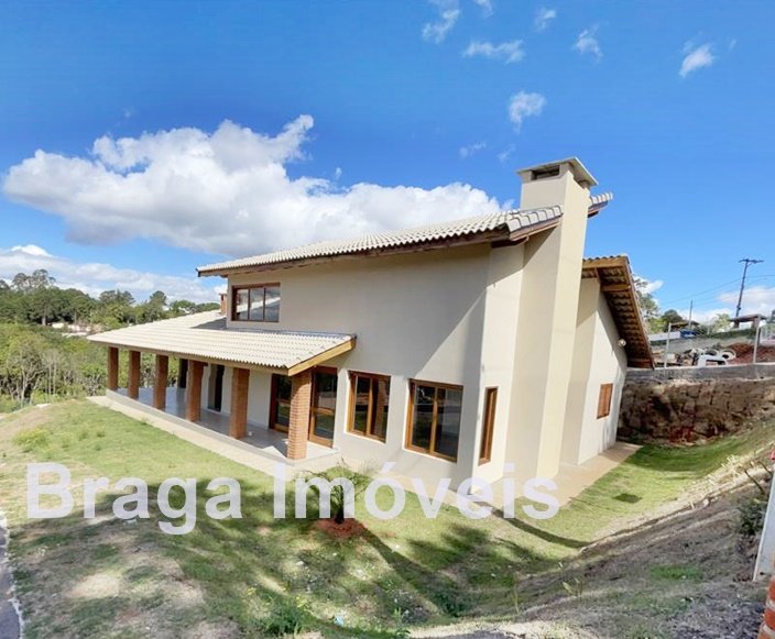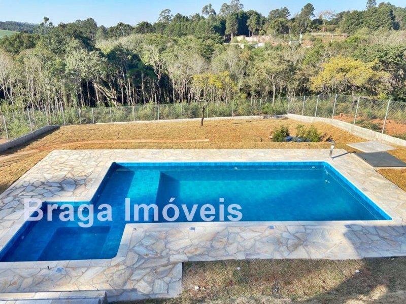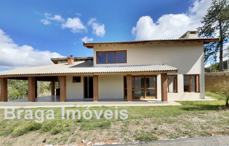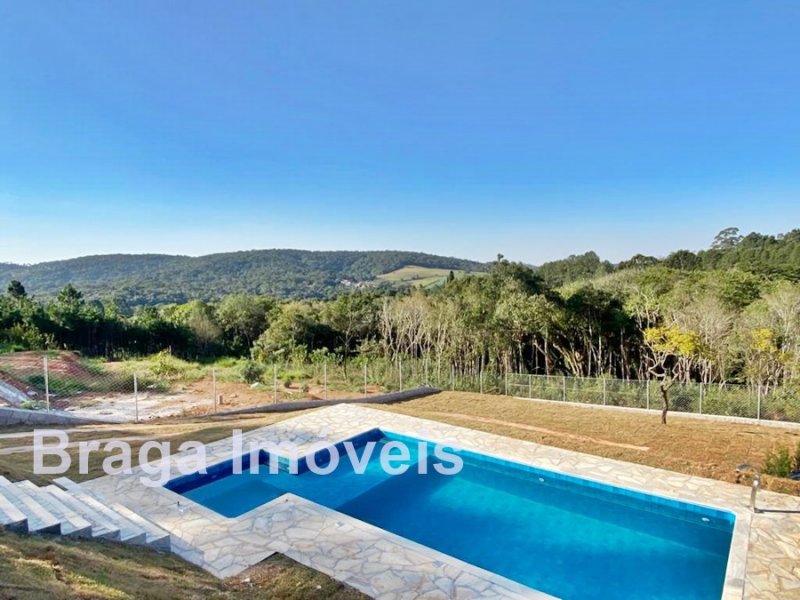 Cond. Fechado - Chácara c/ 2.000m² - Vista privilegiada - Casa em alvenaria AC 215m² - 3 dormitórios (1 suite c/ closet), ampla sala c/ pé direito alto, lareira e mezanino, portas balcão, lavabo, cozinha americana, área de serviço e linda varanda c/ vista da região. Espaço gourmet coberto junto a cozinha c/ churrasqueira e forno p/ pizza e mais um WC. Na área externa linda piscina com hidro e bom deck. Está toda cercada com alambrando e gramada, servida por água de poço caipira, possui estacionamento p/ vários carros. Localizada em local tranquilo vizinha de ótimas propriedades. O condomínio oferece: Segurança 24h motorizada, coleta de lixo e portarias. Distante 82 km da Pça.da Sé/SP.