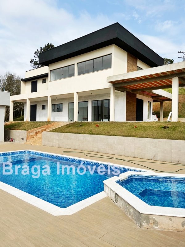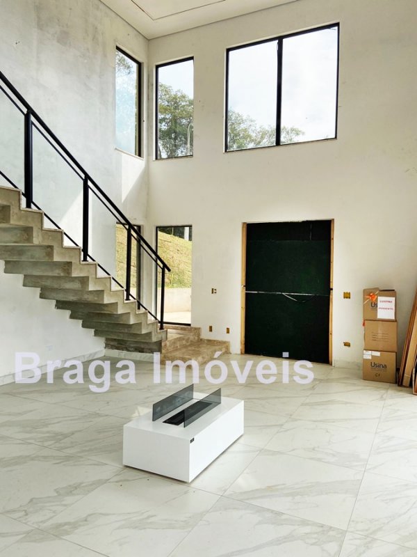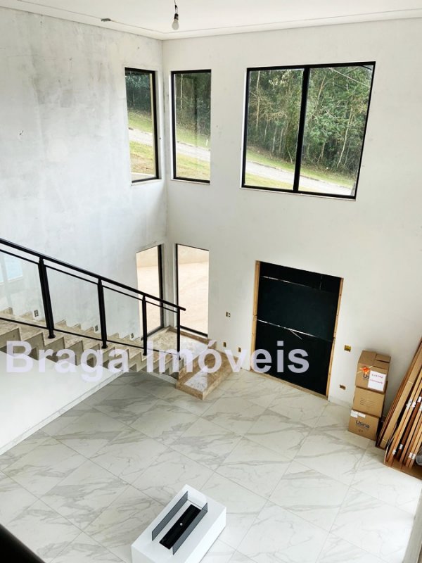 Cond. Fechado - Casa de alto padrão em área c/ 1.569m² - Casa em alvenaria assobradada - AC 395m² - c/ 5 suites (sendo uma no andar térreo), amplas salas de estar, jantar, tv, pé direito alto e iluminação natural, cozinha em conceito aberto integrada ao ambiente, mais lavanderia e amplo depósito, toda avarandada. Na área externa espaço gourmet coberto completo c/ churrasqueira, forno p/ pizza e forno a lenha, ampla ilha c/ cooktop , bem iluminada, mais dois WC; de frente p/ piscina c/ SPA aquecido, iluminação e vista panorâmica.