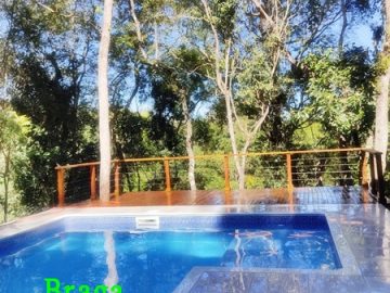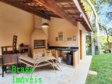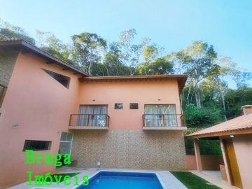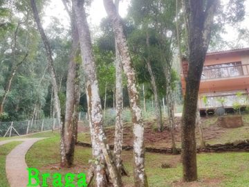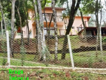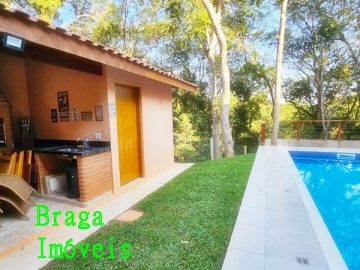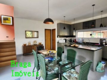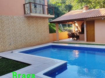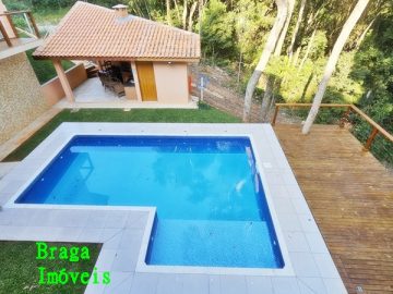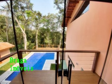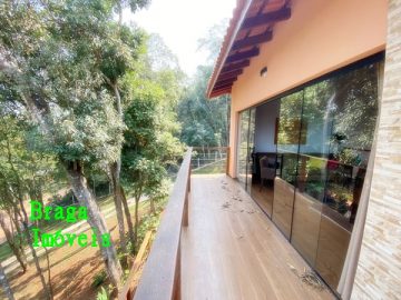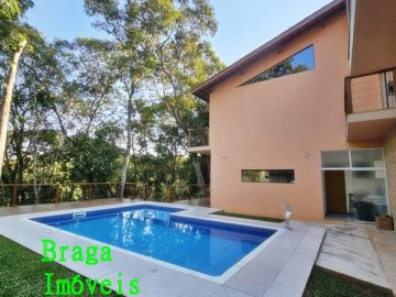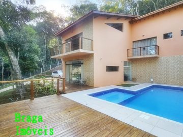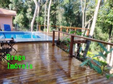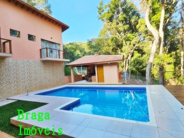 CONDOMÍNIO FECHADO - Ótima chácara c/ 2.000m2 , a/c 250 m² - Casa assobradada, em alvenaria, com piscina, com 3 suites (piso superior e escada com porcelanato formigres retificado CUMARU, 20x1,20);   sala, cozinha americana (planejada c/ pia e ilha revestida de mármore preto sem os eletronicos) e sala de jantar e piso em porcelanato cimenticio formigres 60x1,20 , sacadas, mais 1 banheiro (todos os banheiros com pias de mármore branco e piso de porcelanato 58 x 58 e vidros temperados de 8mm) e  lavanderia.  Piscina em "L" 3,5 x 7,0 x 5,0m com lindo deck 1,5m x 7m avançando sobre o talude e mais dois decks de 4m x 6m (preparada p/ receber aquecimento se desejarem).;  Espaço coberto com  churrasqueira completa e pia c/ 1,5m e mais 1 banheiro.
