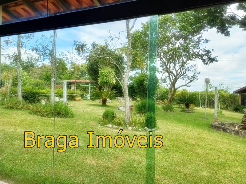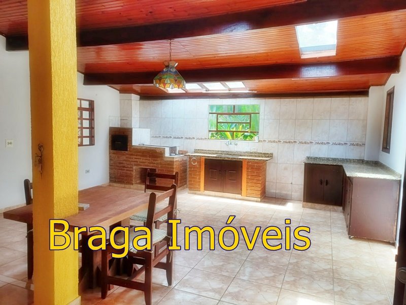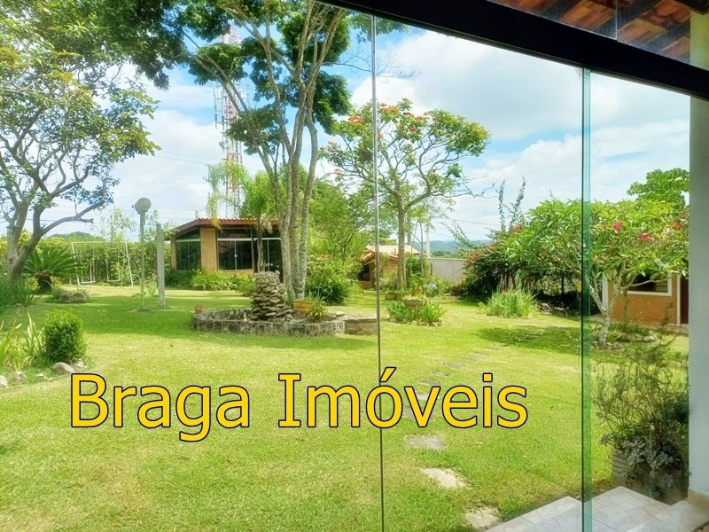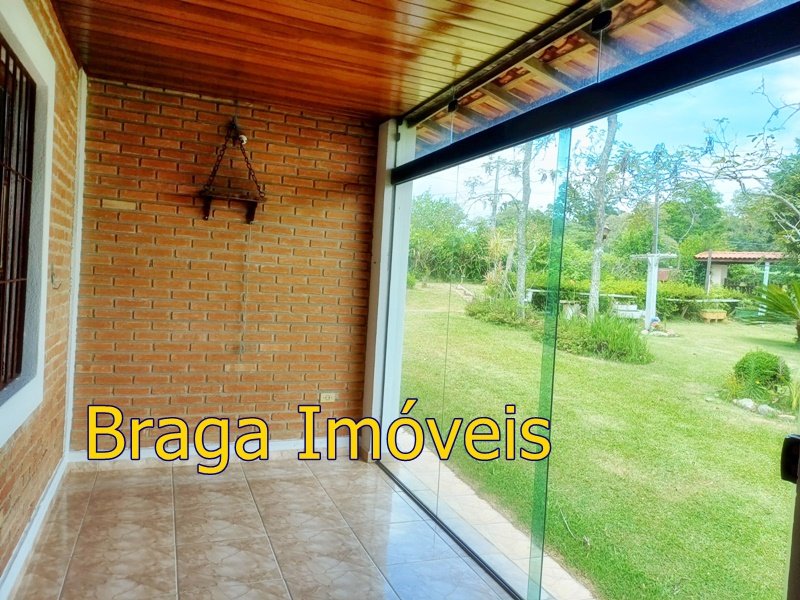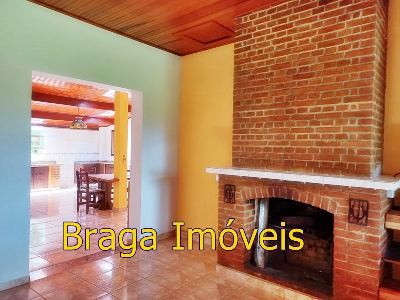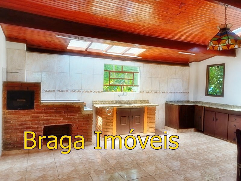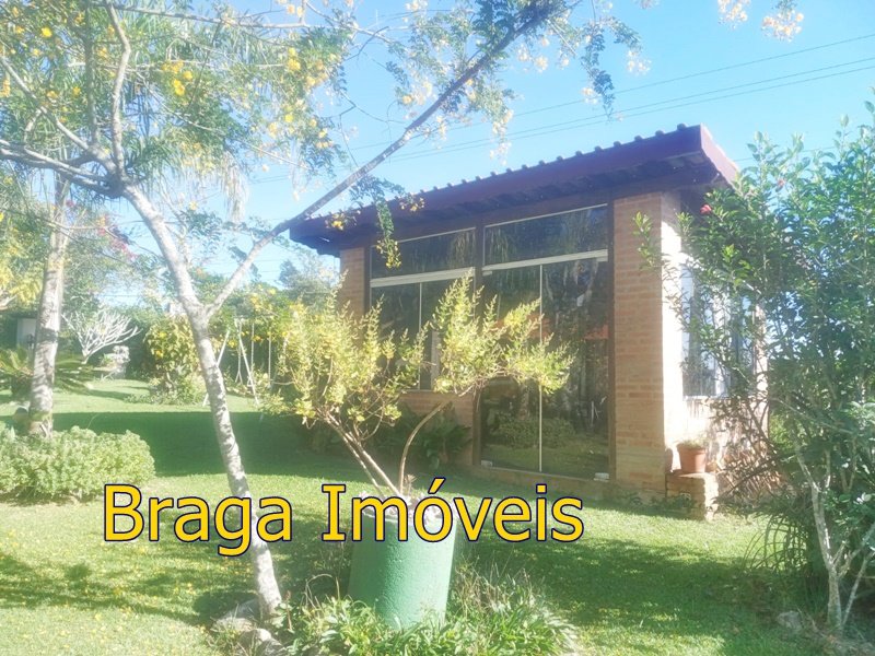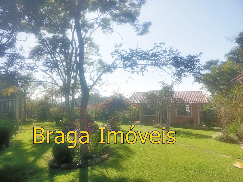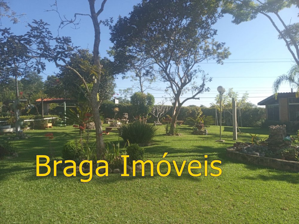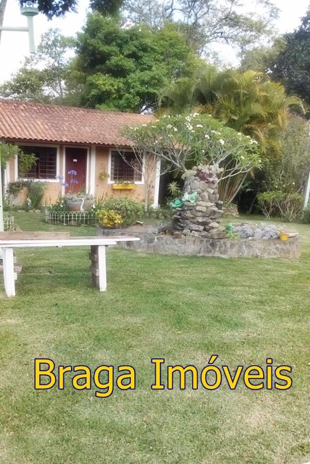 Tendo 3 dormitório, 1 banheiro, ampla cozinha com fogão a lenha, sala 2 ambientes pé direito alto com claraboia, toda com forro em lambri, lareira, saleta para descanso, varanda fechada com vidros verdes temperado e porta balcão, lavanderia, churrasqueira, mais um banheiro externo, 2 comodos quarto e sala com banheiro, canil, garagem coberta e mais 1 cobertura, juntos para 2 carros, quarto para guarda de ferramentas. A área e toda cercada com alambrado e cerca viva, toda gramada, uma fonte, balanço par crianças, paisagismo, at de fibra ótica.ras tem um pequeno bosque. Área toda iluminada, muito verde, 03 caixas de água que totalizam 5.000 litros.