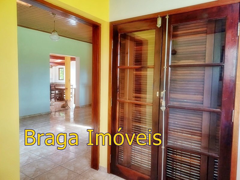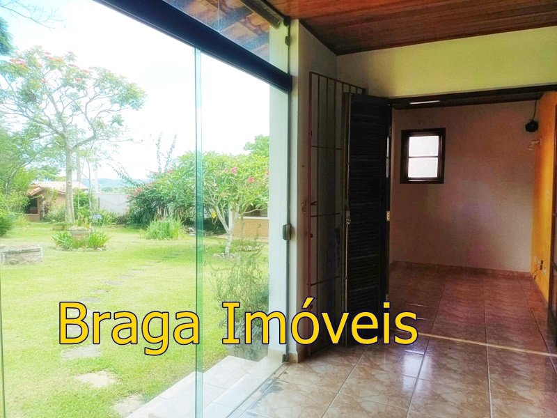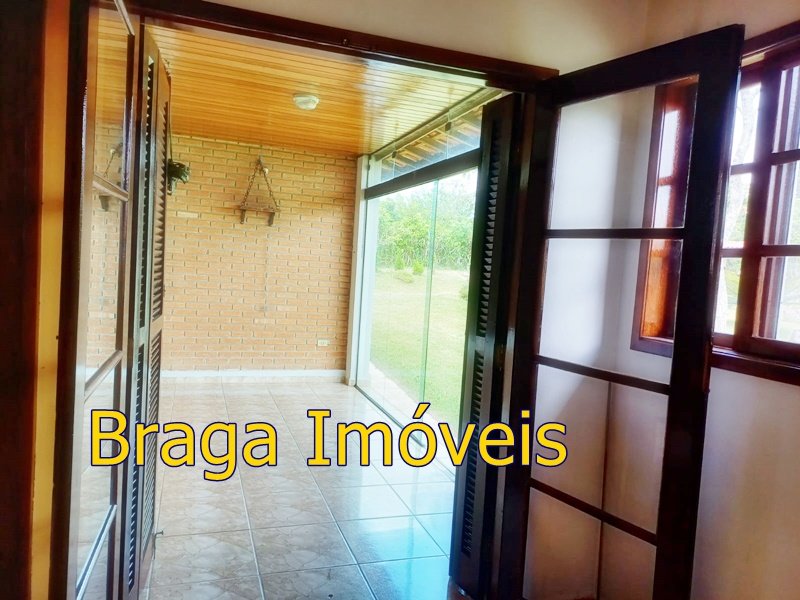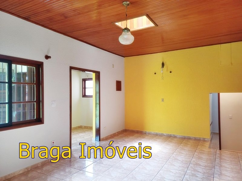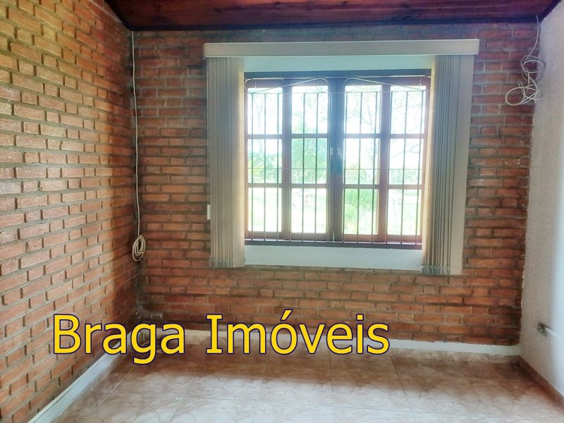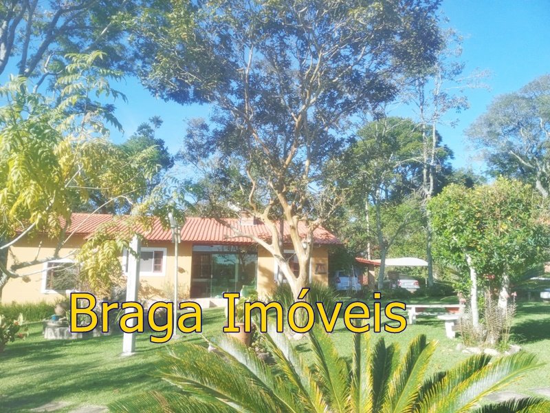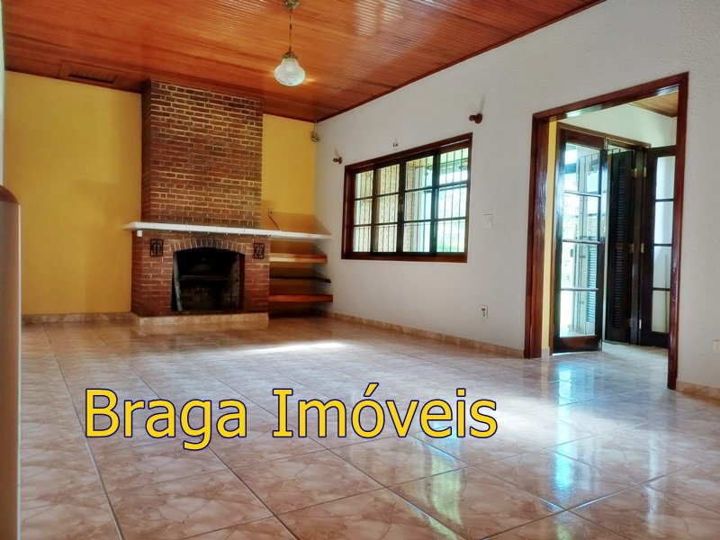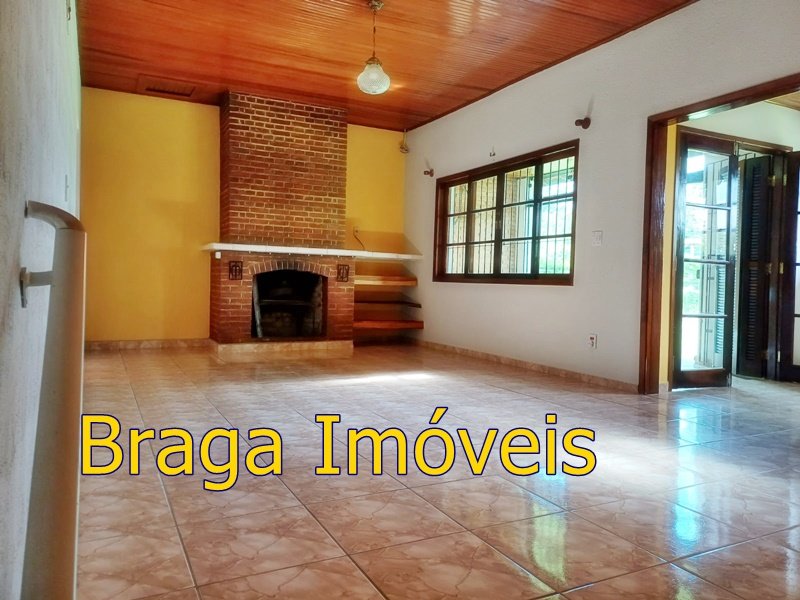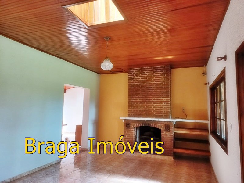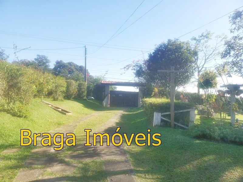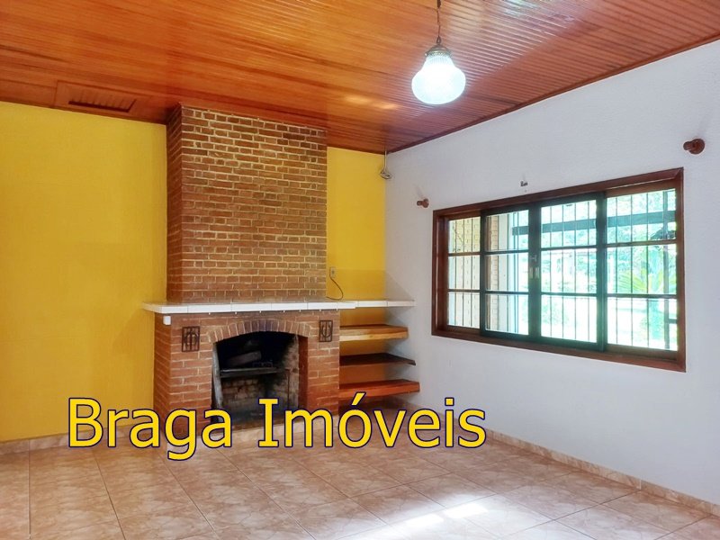 Tendo 3 dormitório, 1 banheiro, ampla cozinha com fogão a lenha, sala 2 ambientes pé direito alto com claraboia, toda com forro em lambri, lareira, saleta para descanso, varanda fechada com vidros verdes temperado e porta balcão, lavanderia, churrasqueira, mais um banheiro externo, 2 comodos quarto e sala com banheiro, canil, garagem coberta e mais 1 cobertura, juntos para 2 carros, quarto para guarda de ferramentas. A área e toda cercada com alambrado e cerca viva, toda gramada, uma fonte, balanço par crianças, paisagismo, at de fibra ótica.ras tem um pequeno bosque. Área toda iluminada, muito verde, 03 caixas de água que totalizam 5.000 litros.