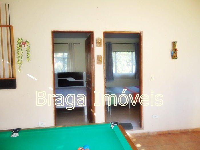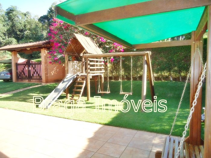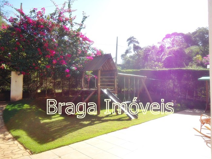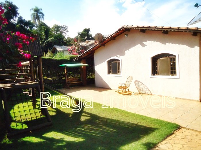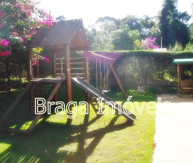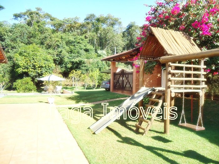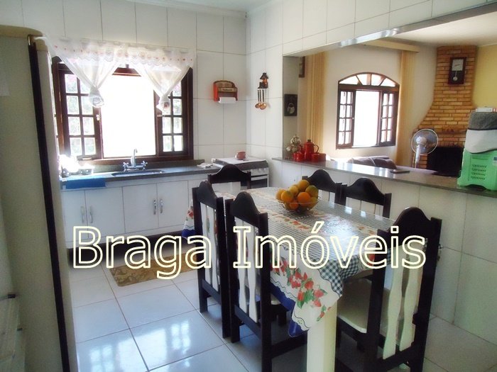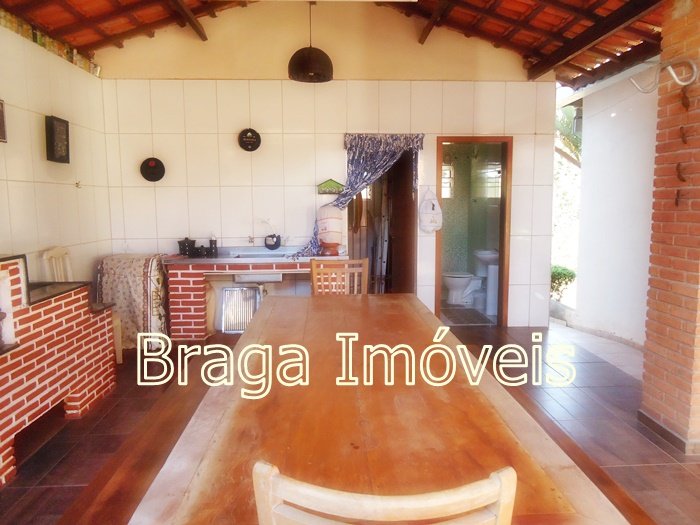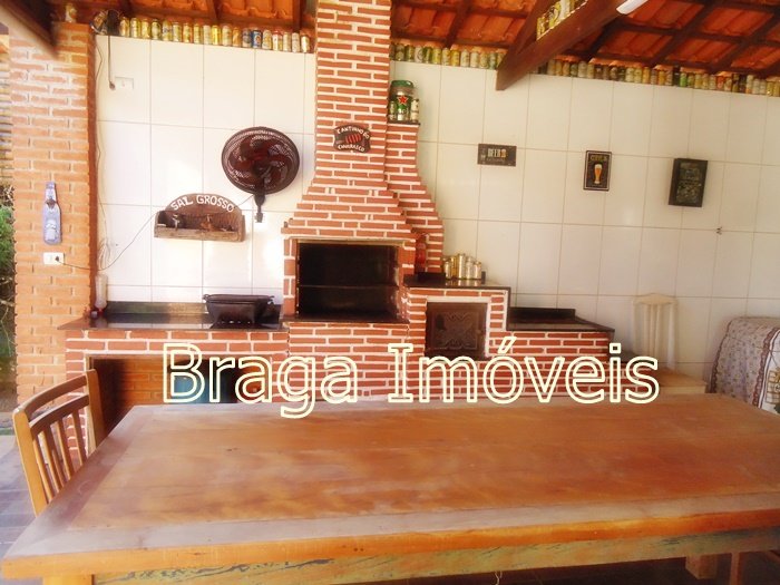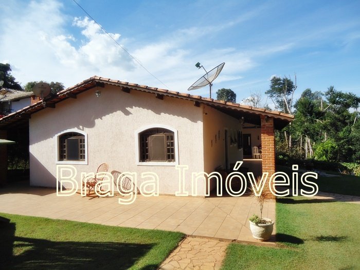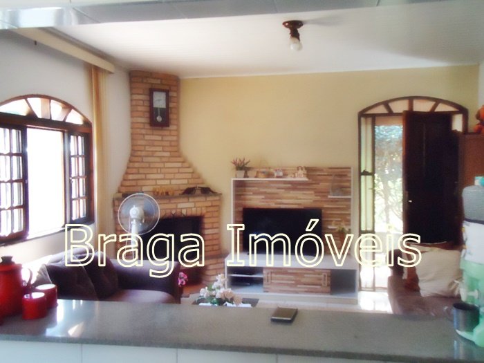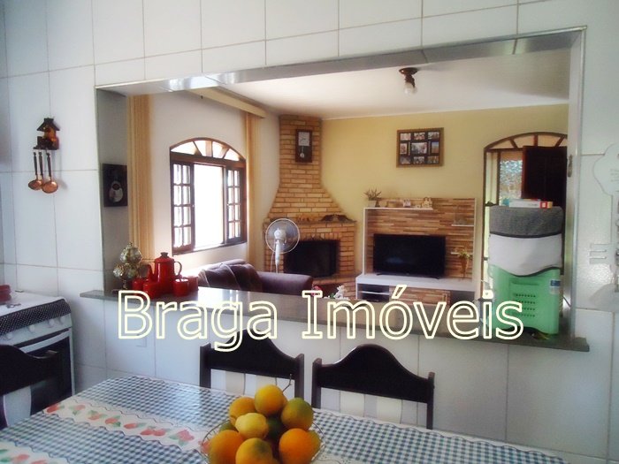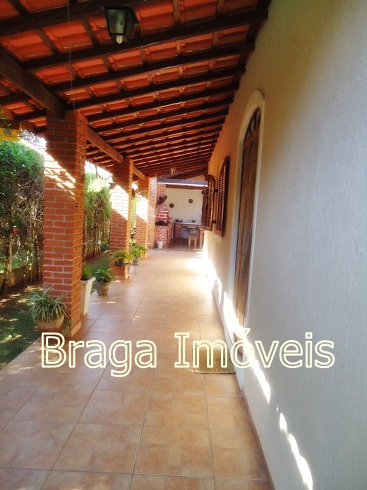 Casa térrea de alvenaria, com 5 dormitórios, sendo 1 suítes e 2 banheiros social , cozinha, sala com porta balcão, lareira, em todas dependências forro laminados de PVC branco , espaço gourmet completo coberto, com forno , fogão a lenha, forno de pizza e pia de inox. Área de serviço , quarto para ferramentas , chuveiro externo, casa toda com varanda e toda com revestimento frio, piscina de vinil, com bom deck em pedra mineira , lazer para as crianças e balança.