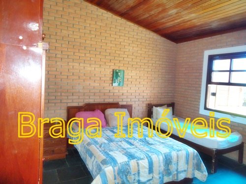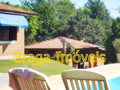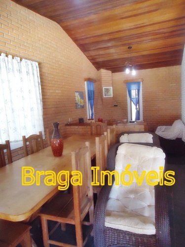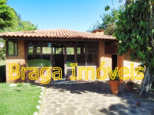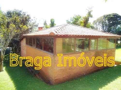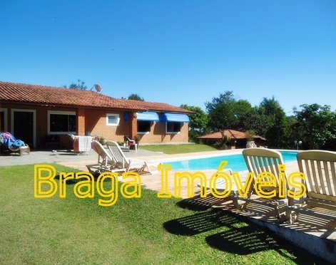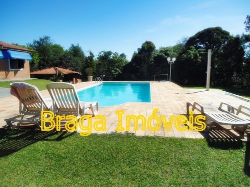 Casa sede com 4 dormitórios sendo 01 suíte, banheiros com box   azulejado até o teto,  um lavabo, sala 2 ambientes com lareira, bem arejada, teto pé direito alto, forro de lambris, cozinha azulejada até o teto, lavanderia, toda casa piso frio em ardósia, portas e  janelas de madeira,  espaço gourmet, churrasqueira coberta, com forno de pizza,  varanda com frente para a piscina  de fibra com  4,5 x 10 m, l,60 de profundidade, bom deck de pedra mineira, mini campo de futebol, garagem coberta, e estacionamento para vários veículos, está toda cercada em alambrado e cerca viva, gramada em toda extensão do terreno com  ótima iluminação. Ruas cascalhadas, ótima vizinhança de fins de semana ou morando, condomínio tem clube com aparelhagem para os condôminos ,  praças com aparelhagem de exercícios ao ar livre, pista de Cooper, 03 lagos para pesca artesanal e churrasqueira e um lindo gramado, cond. provido de internet, câmeras pelo condomínio, segurança com  rondas motorizadas, e portarias 24hs .
