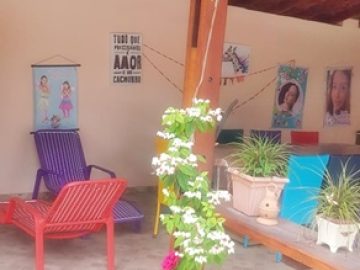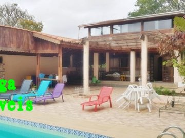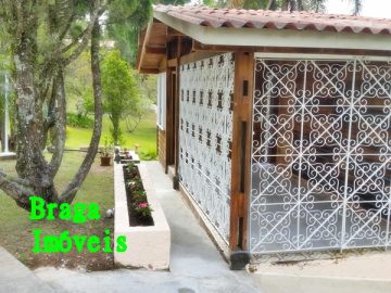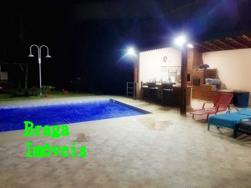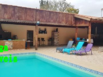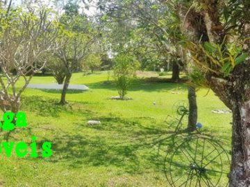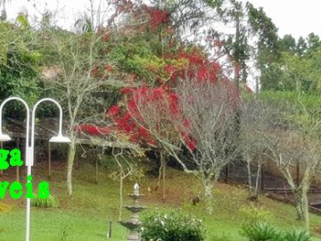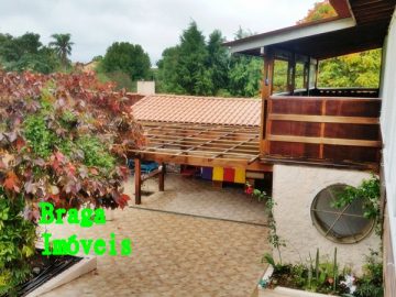 Há no terreno uma piscina , área de churrasqueira, forno e fogão a lenha; pomar com várias árvores frutíferas produindo, laranjas, mexericas, manga, etc., estacionamento coberto para 2 carros e amplo jardim .]