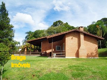 Ótima chácara com terreno com 2371 m² e área contruída de 220 m²; contendo casa sede com 3 dormitórios, sendo 2 comportas balcão com saída para a varanda, tem 2 banheiros com Box Blindex, sala com 2 ambientes com lareira, entrada social, ótima cozinha azulejada até o teto, lavanderia de bom tamanho também azulejada até o teto.
